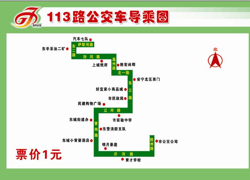 113路:該線路自汽車七隊始發(fā),經伊犁河路(華瑞小區(qū))、東二路(東辛采油二礦、盛大商場),改經汾河路(青盛小區(qū)、上城悅府)、溫州路(勝宏尚郡),到達北一路后,恢復原線路,線路里程、票價、班次均不變。