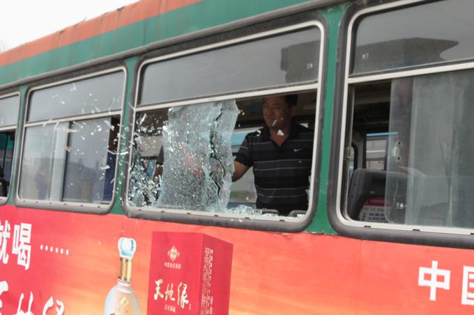 演練中,一輛滿載乘客的公交車驚現(xiàn)火情,車輛冒出大量濃煙,已經(jīng)無法繼續(xù)行駛,車上司乘人員迅速啟動應急預案,開啟車門并用應急錘敲碎車窗玻璃組織引導車廂內的乘客緊急疏散,全體乘客用手捂住口鼻,緊張而有序地疏散到安全地帶。