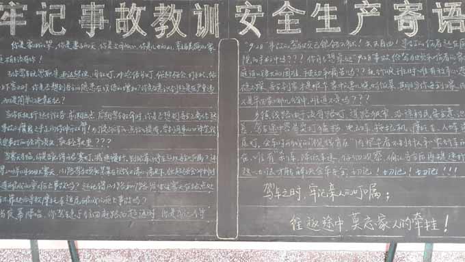 近日,市公交公司汽車三隊為貫徹落實好公司第四季度安委會的會議精神,做好駕駛員工安全教育,進一步抓好車隊安全生產(chǎn)工作,一是針對鄉(xiāng)鎮(zhèn)線路的營運特點,專門出了一期“安全生產(chǎn)黑板報”,二是專門制作了一幅以“注重安全,關(guān)愛生命”為主題的展板,擺放到大廳里,以此警醒和告誡廣大一線駕駛員,行車中要把安全放在首位,牢記遵紀守法,按章行車、謹慎駕駛、確保安全。