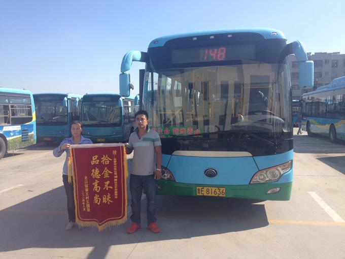 9月3日,家住東營(yíng)區(qū)史口鎮(zhèn)寨王村的王國(guó)梁先生乘坐148路車外出,下車后發(fā)現(xiàn)錢包遺忘在公交車上。汽車四隊(duì)駕駛員郭嘉撿到了王國(guó)梁先生遺失的錢包,發(fā)現(xiàn)內(nèi)有身份證、銀行卡、現(xiàn)金一萬(wàn)二千余元,忙將其上交車隊(duì)暫時(shí)保管,車隊(duì)及時(shí)聯(lián)系失主并將失物完璧歸趙。王國(guó)梁接過(guò)失而復(fù)得的錢包顯得意外而又驚喜,執(zhí)意要給公交車駕駛員郭嘉師傅酬金3000元表示感謝,被她婉言謝絕了。翌日,王國(guó)梁拿著一面寫(xiě)有“拾金不昧、品德高尚”的錦旗來(lái)到車隊(duì),感謝郭嘉師傅拾金不昧的高尚品德。