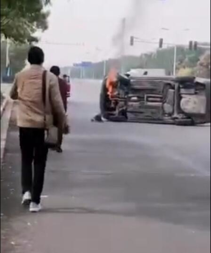 今天中午十二點(diǎn)半左右,在青島路上,一輛小轎車不知什么原因發(fā)生了側(cè)翻起火,火焰不斷向上躥,冒著濃濃黑煙。更令人揪心的是,當(dāng)時車內(nèi)還有三個人(據(jù)說是一家三口)被困車中沒能出來,隨時都有被大火吞噬的危險。