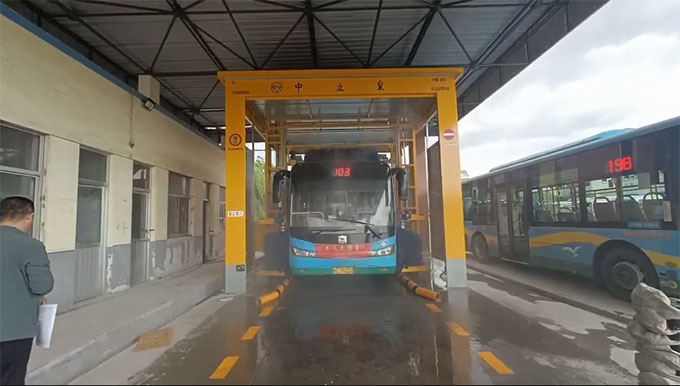 該洗車機為5刷通道式洗車機,造型簡單美觀,整體尺寸小,該洗車機的投入使用大大減輕了工作人員的勞動強度,提升了公交服務(wù)水平,保證了車輛環(huán)境衛(wèi)生整潔、干凈,。為下一步公交車的車容車貌提升、公交服務(wù)水平提升將發(fā)揮重要作用。