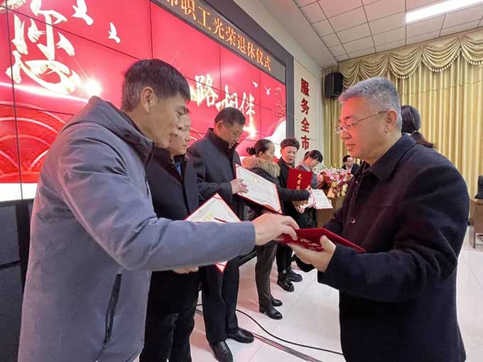 最后,趙龍同志為老同志逐一頒發(fā)榮退證書,并獻(xiàn)上鮮花。儀式過后,各位領(lǐng)導(dǎo)和參加儀式人員集體合影留念。