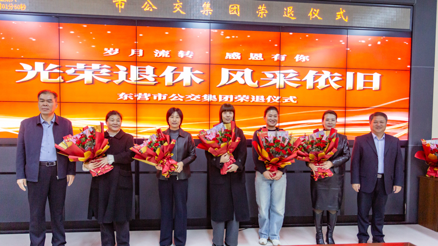 321日上午,市公交集團19名光榮退休職工與黨委班子成員齊聚一堂,舉辦2025年職工榮退儀式,集團黨委向退休職工送上鮮花與祝福。
