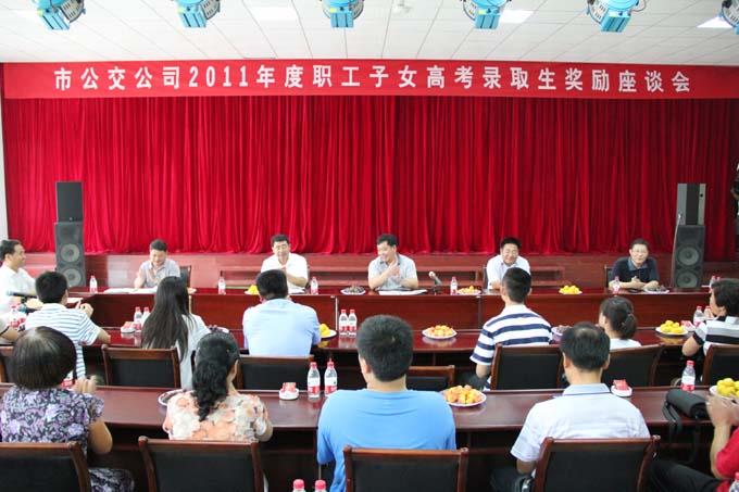 8月27日上午,市公交公司舉行了2011年度職工子女高考錄取生獎勵座談會,為今年高考錄取的職工子女進(jìn)行獎勵。公司經(jīng)理朱新民出席,受獎勵的職工及子女參加。